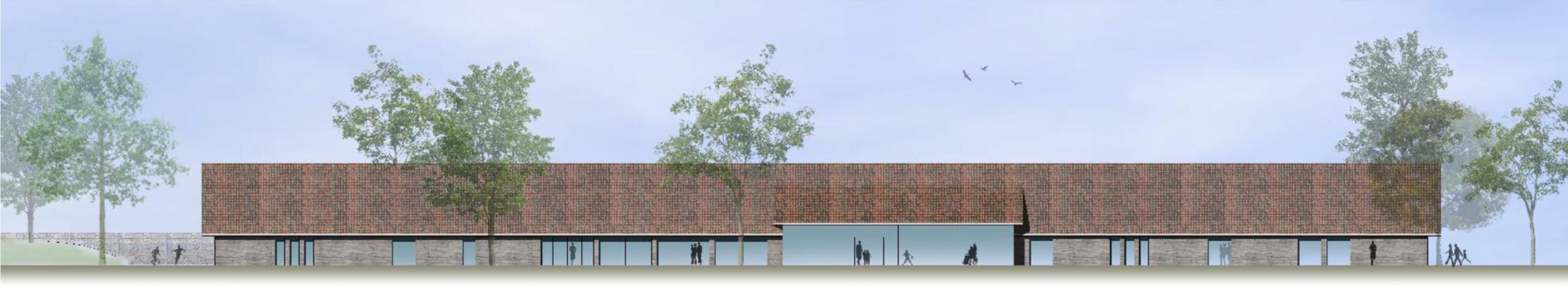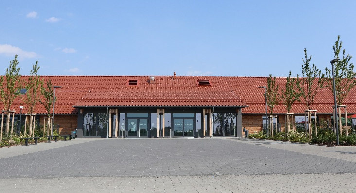The long and narrow, barn-like building structure allows for numerous separate access points to the various functional areas, which are utilized by different clubs and groups. Accessed via the central “meeting” forecourt, the main entrance with its foyer consolidates all functions. The plaza area in front of the building offers ample space for events.