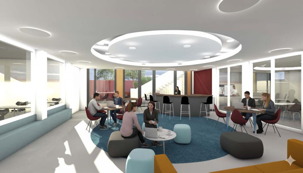 Im Zuge umfassender Modernisierungs- und Umbaumaßnahmen für das Berufskolleg Jülich entwickeln wir Konzept und Entwurf zur Sanierung und Umstrukturierung des von rund 1500 SchülerInnen genutzten Gebäudes.